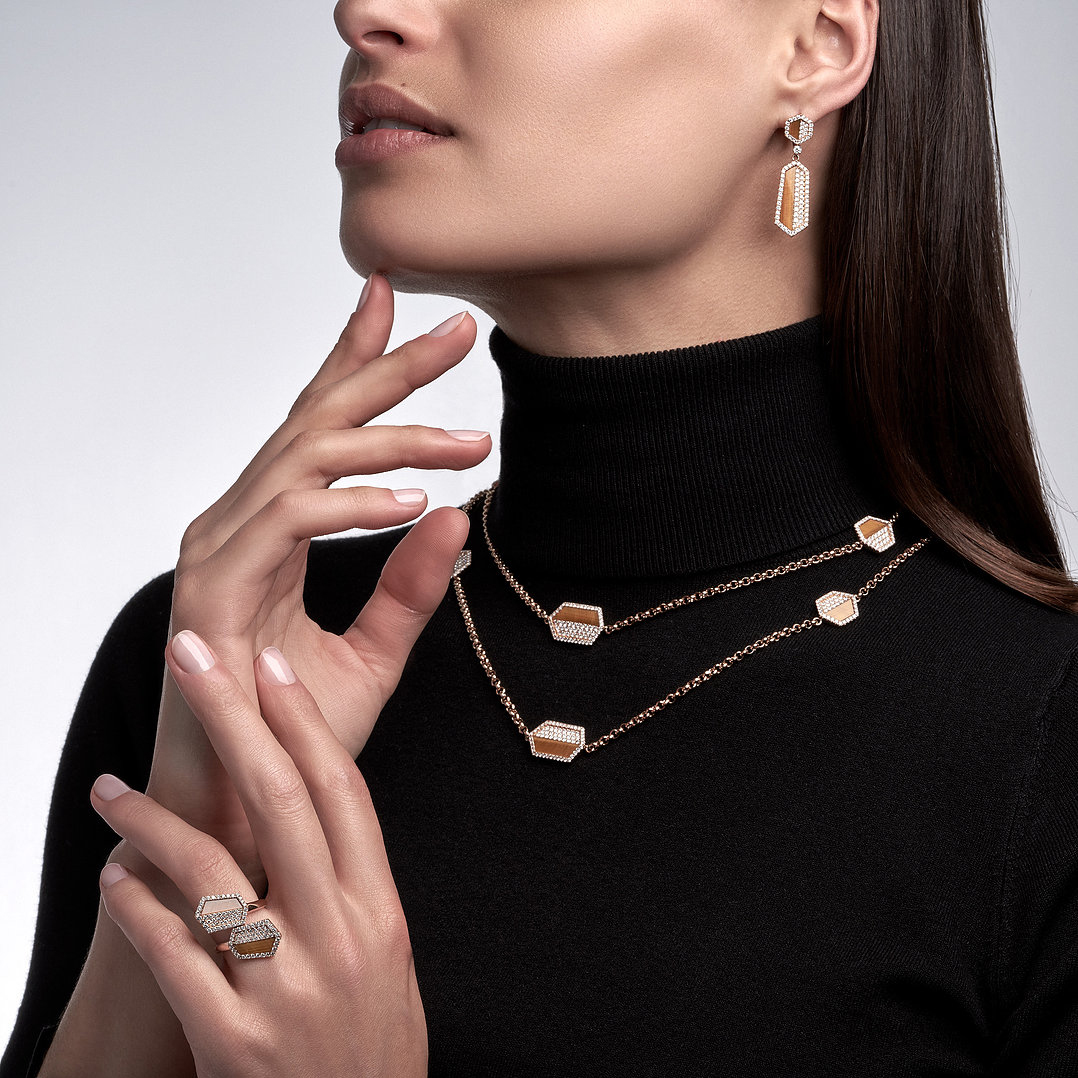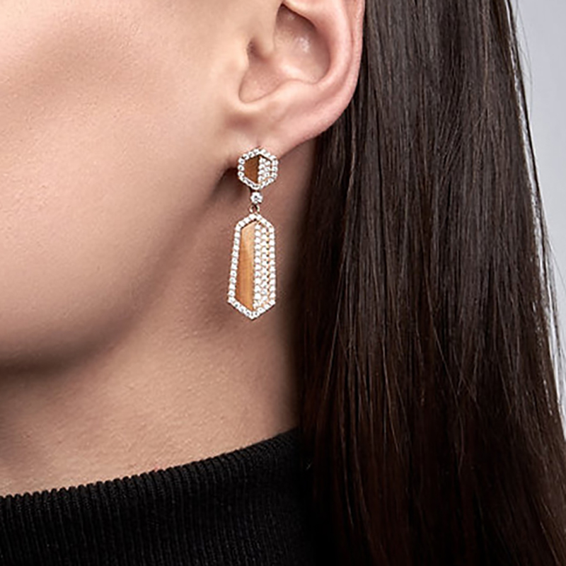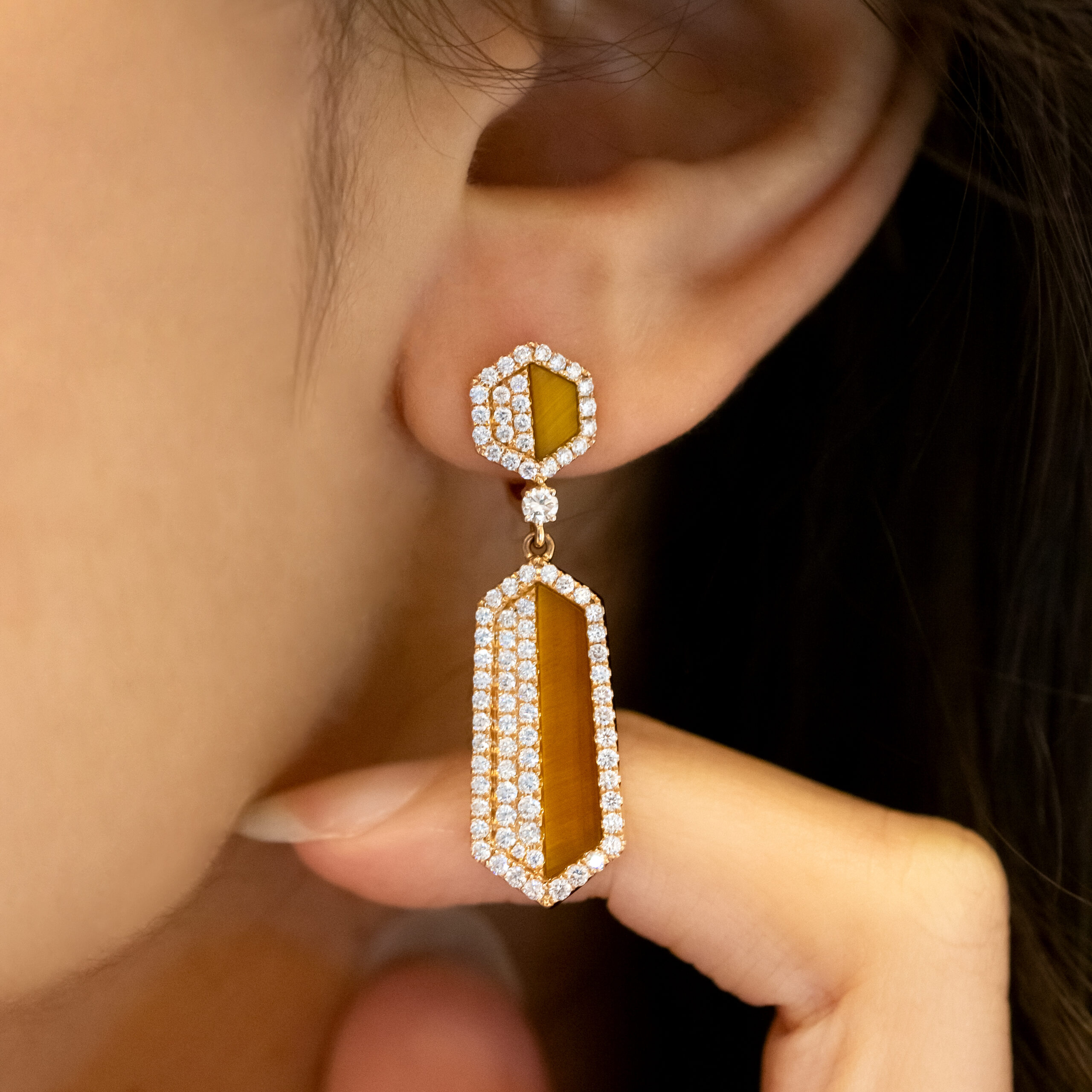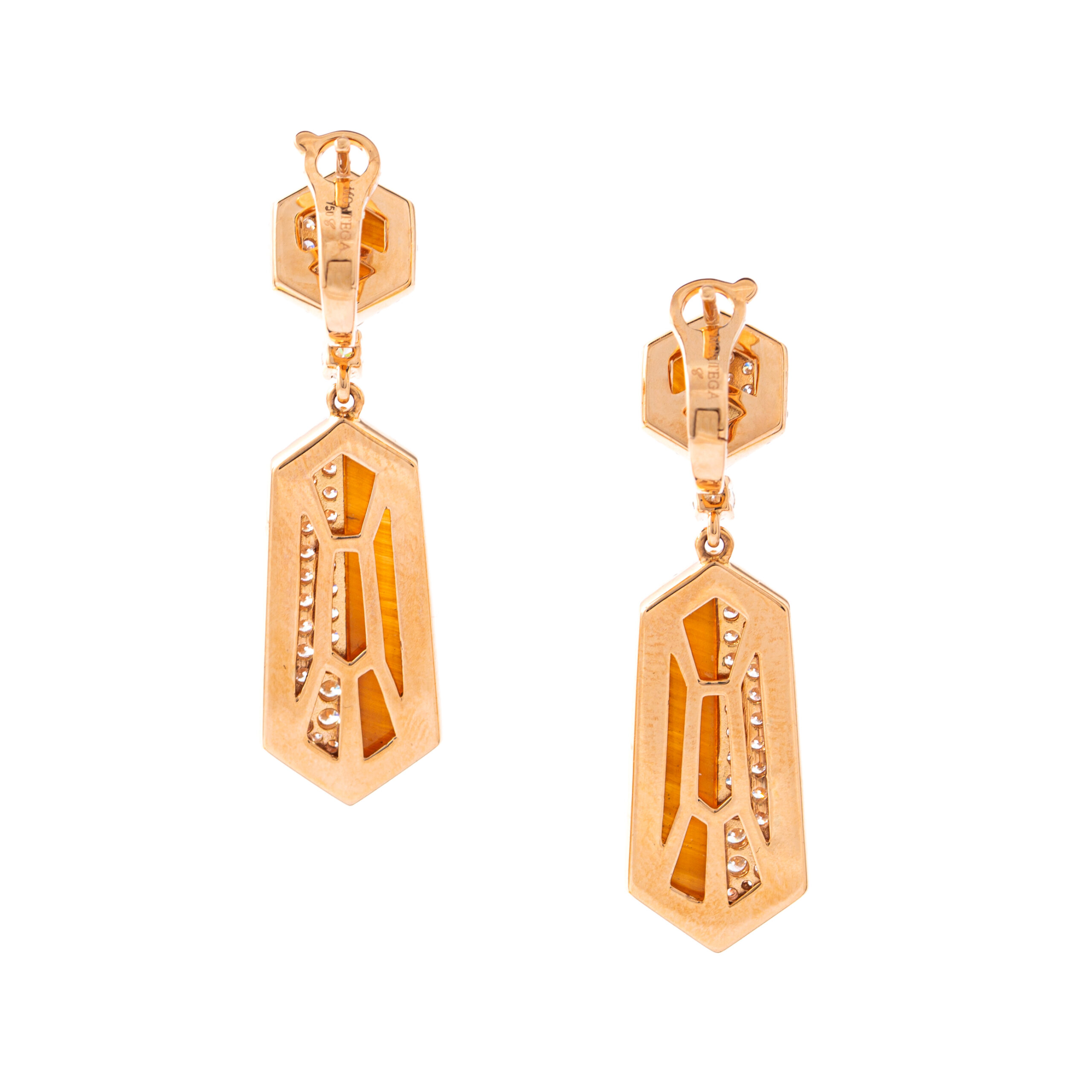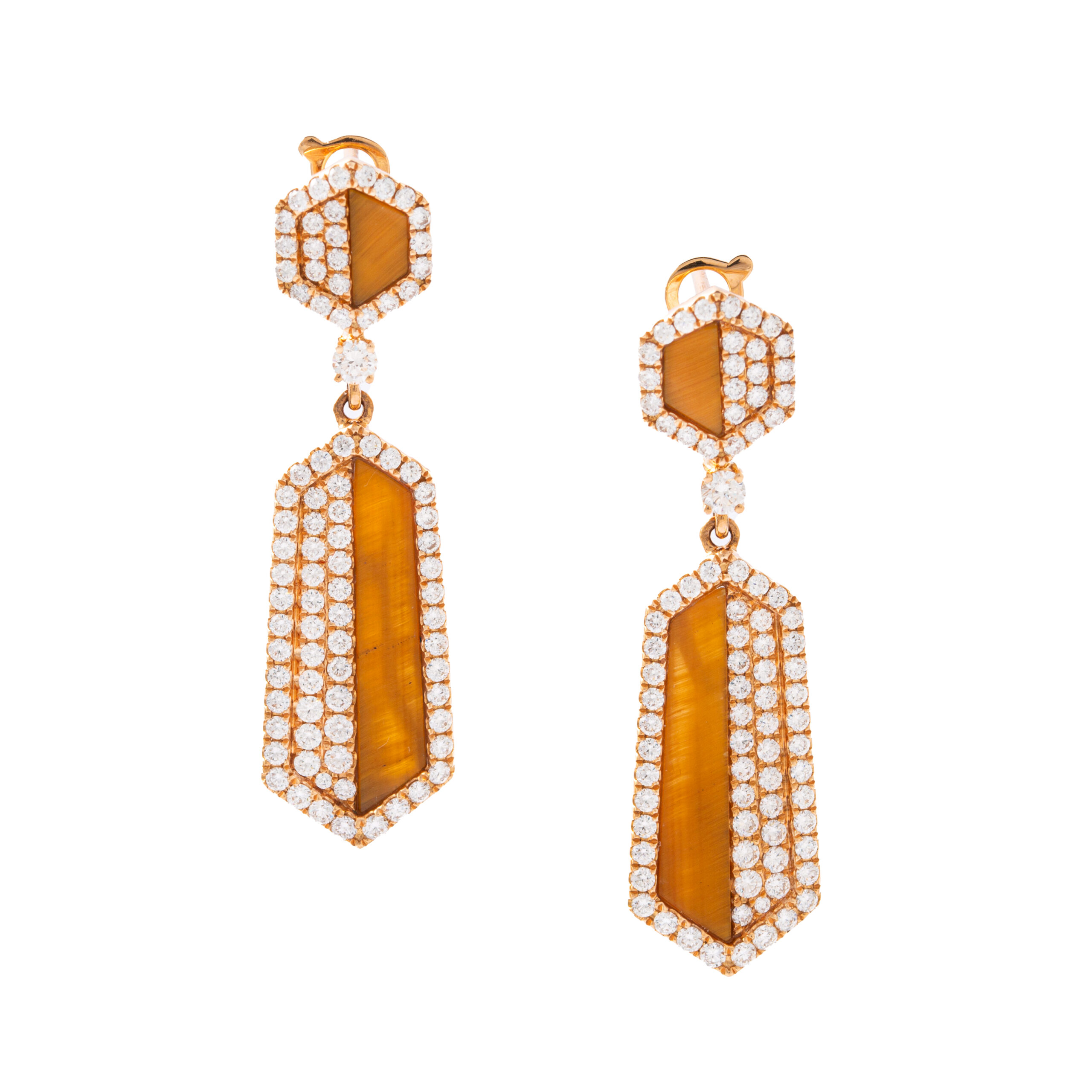 Earrings in 18kt pink gold set with 172 diamonds 1.66 cts and 4 tiger eye 2.79 cts