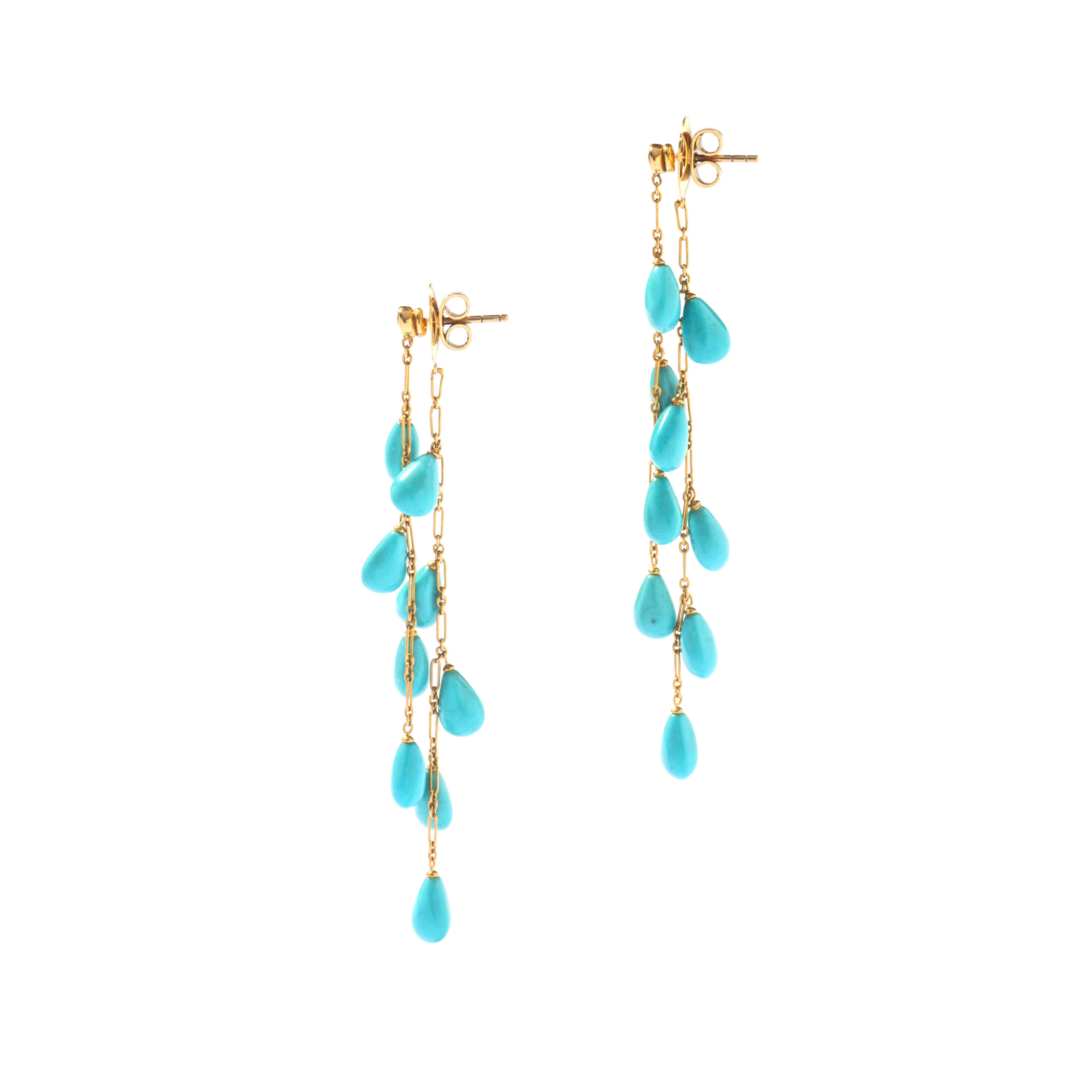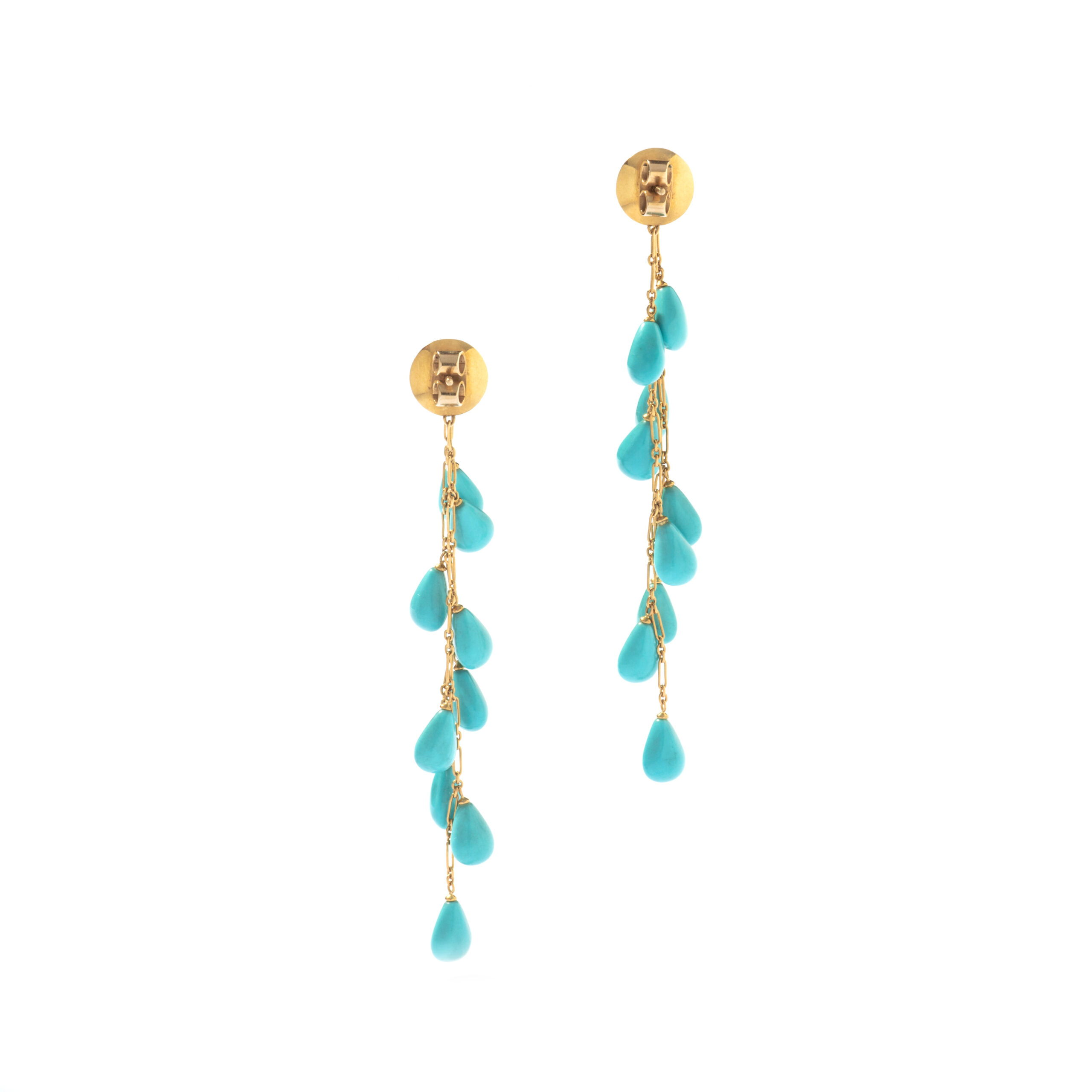 Turquoise Drops Diamond on Yellow Gold 18 Karat Ear Pendants