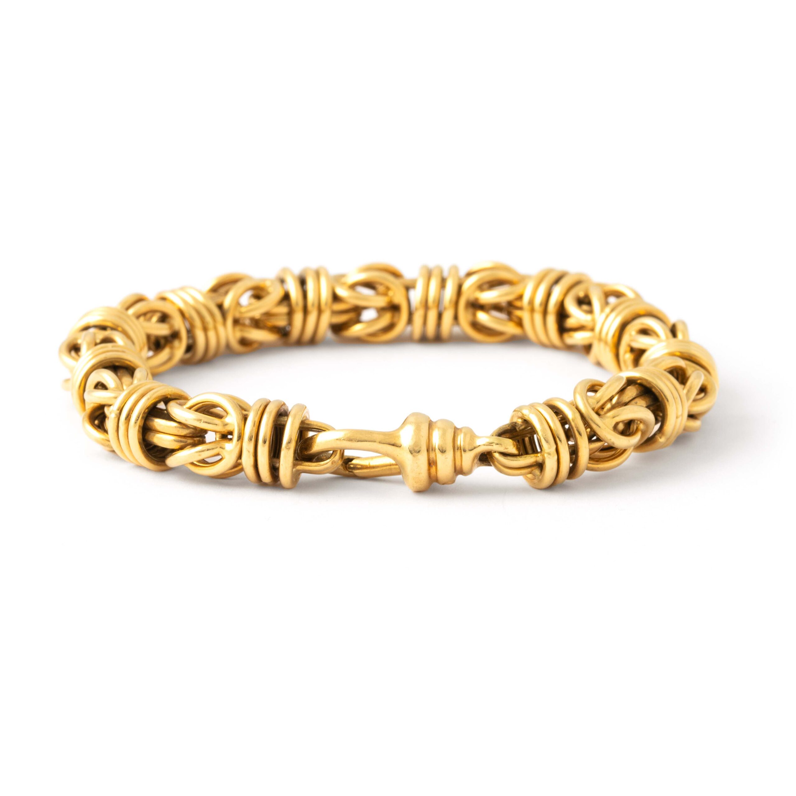 With a total weight of 36.81 grams, this bracelet not only graces the wrist with a substantial feel but also speaks to the quality craftsmanship inherent in vintage pieces. The warm, golden hue of the yellow gold adds a touch of opulence, ensuring that this bracelet becomes a standout element in your jewelry collection.