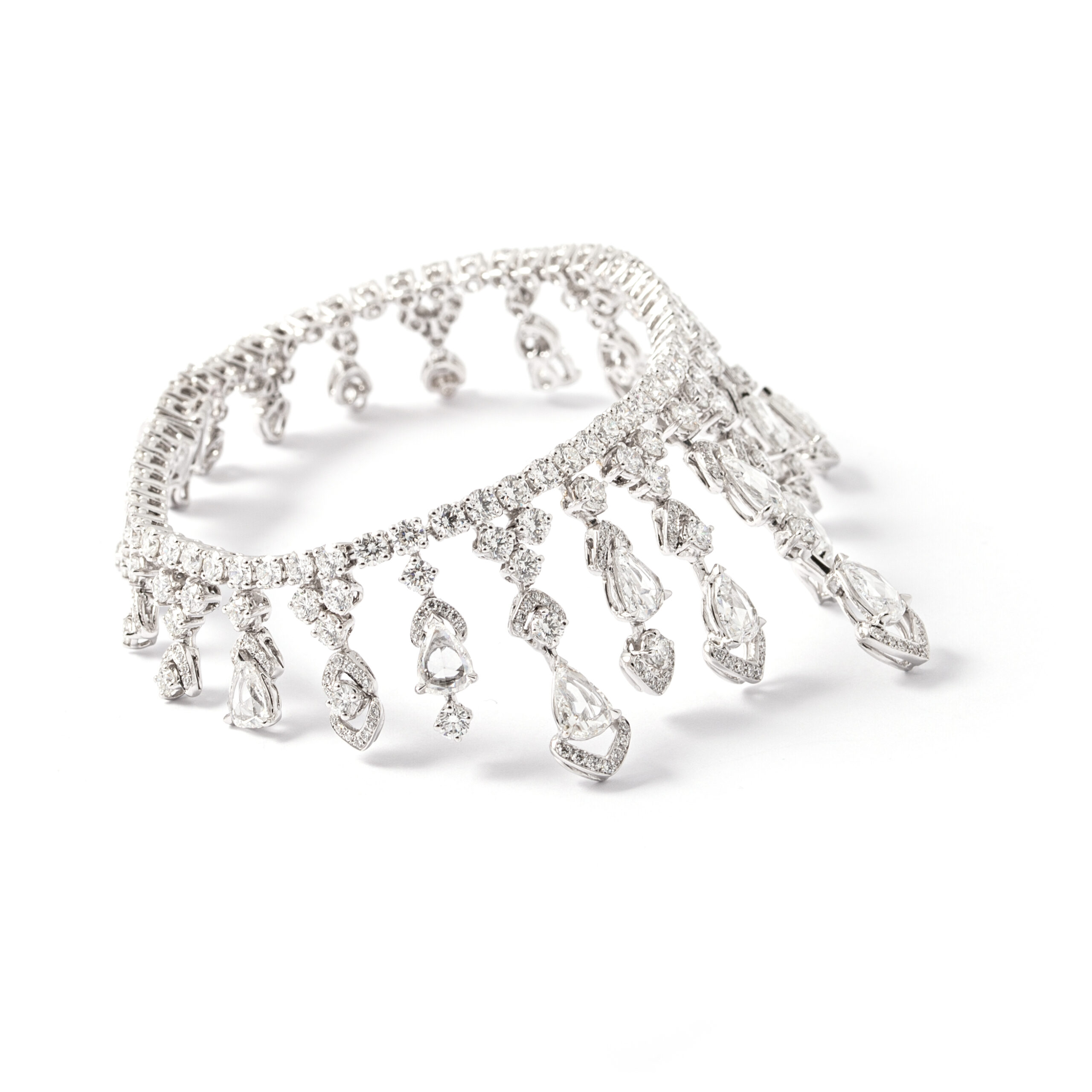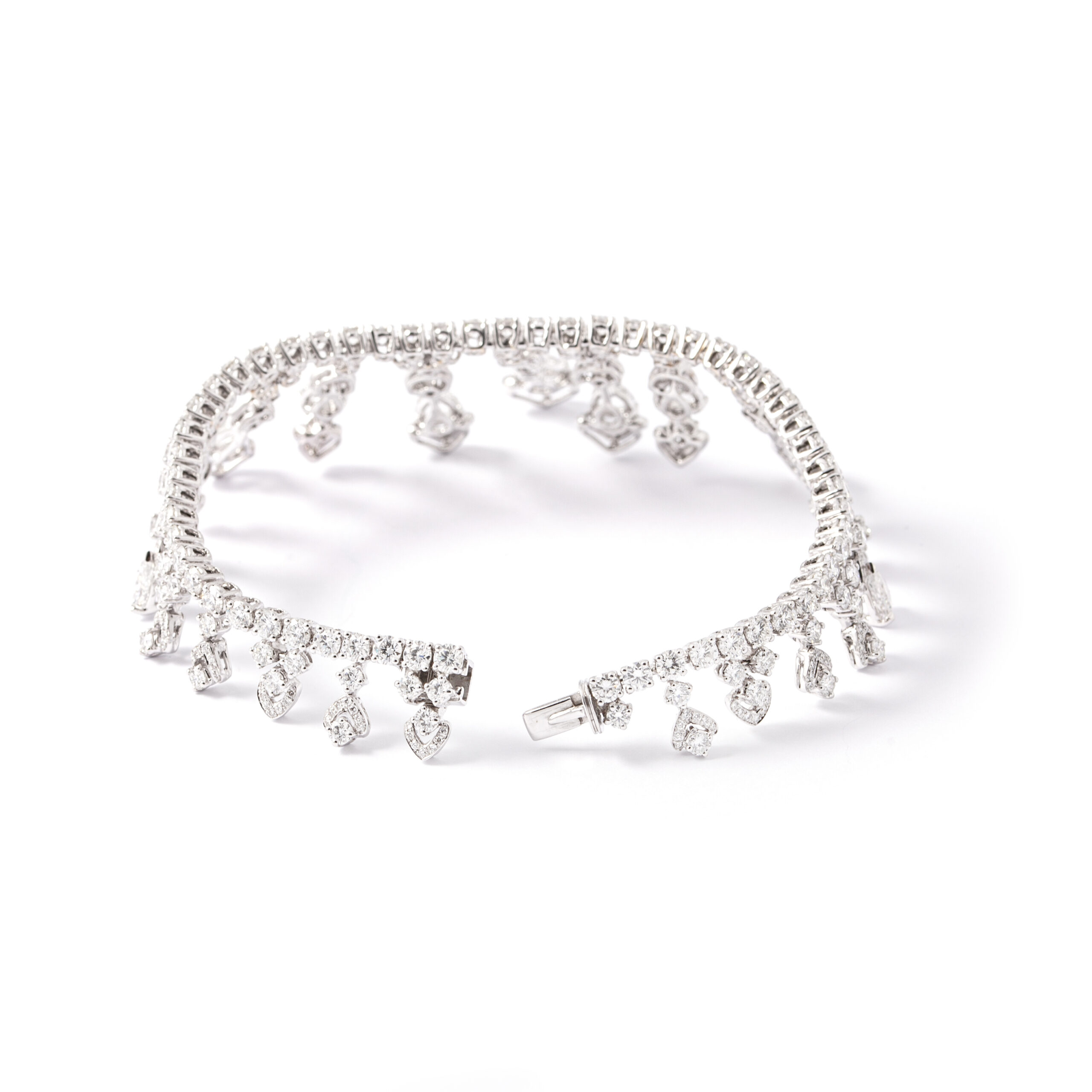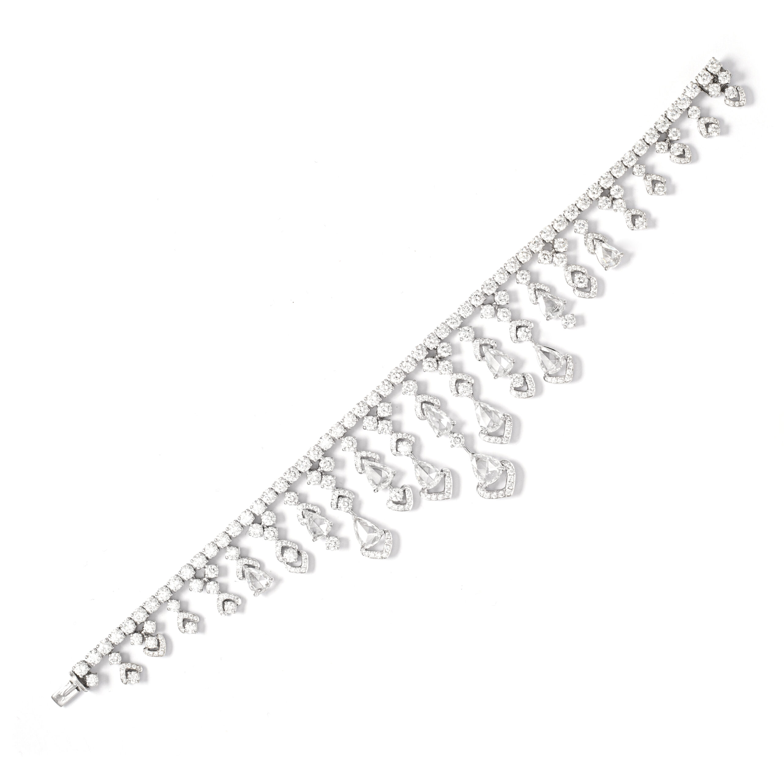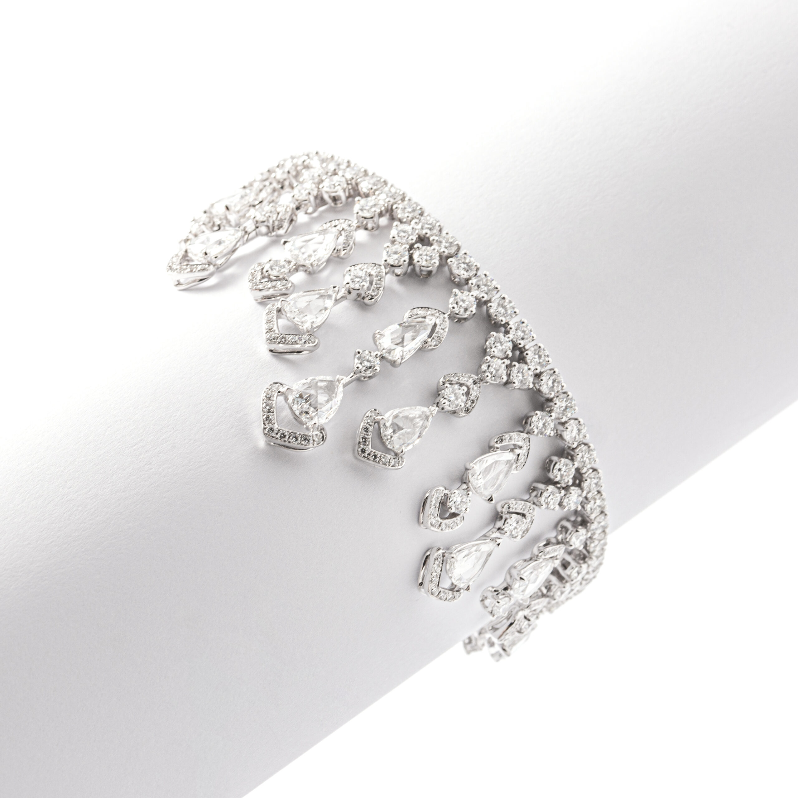 Bracelet in 18kt white gold set with 12 pear-shaped rose cut diamonds 5.12 cts and 341 diamonds 11.25 cts