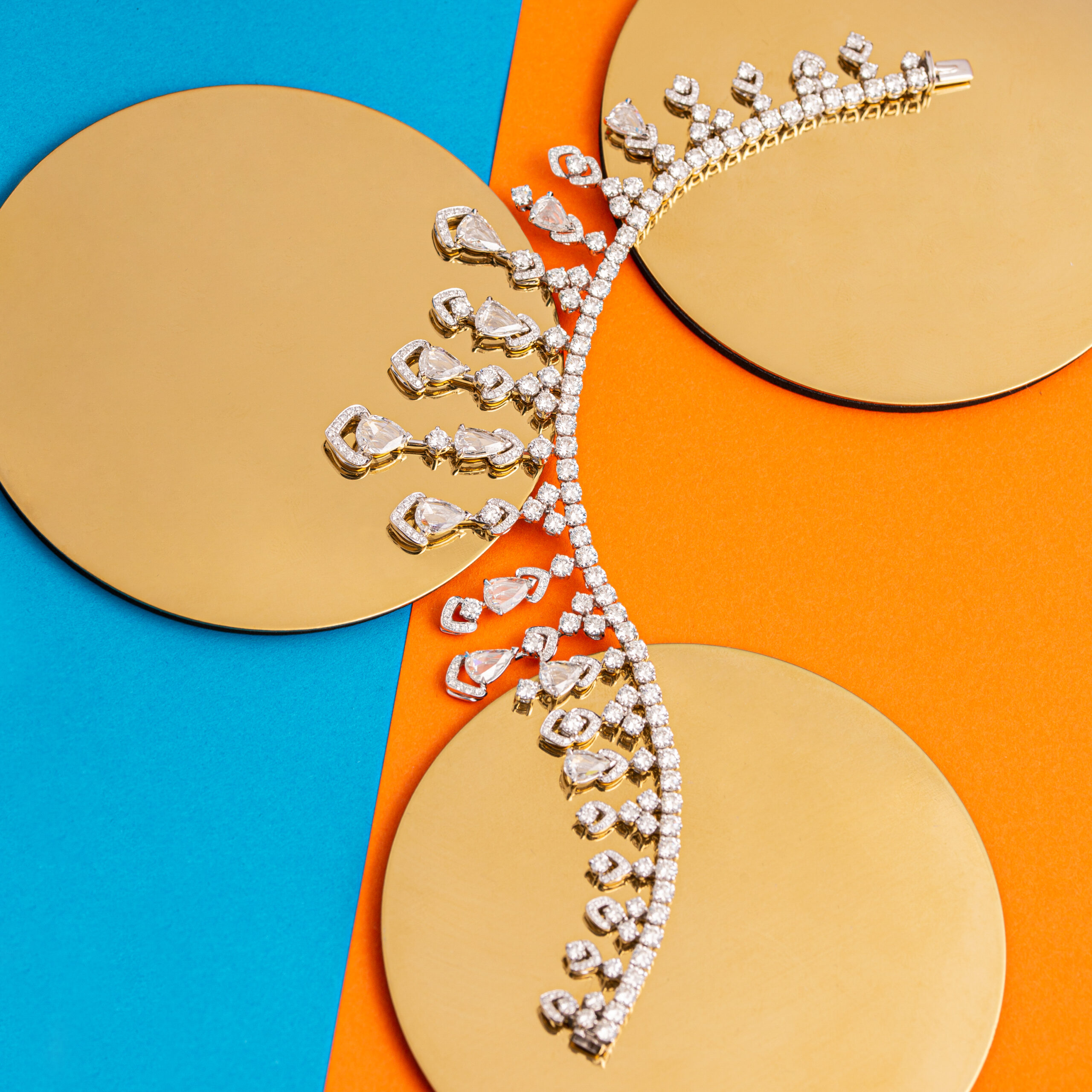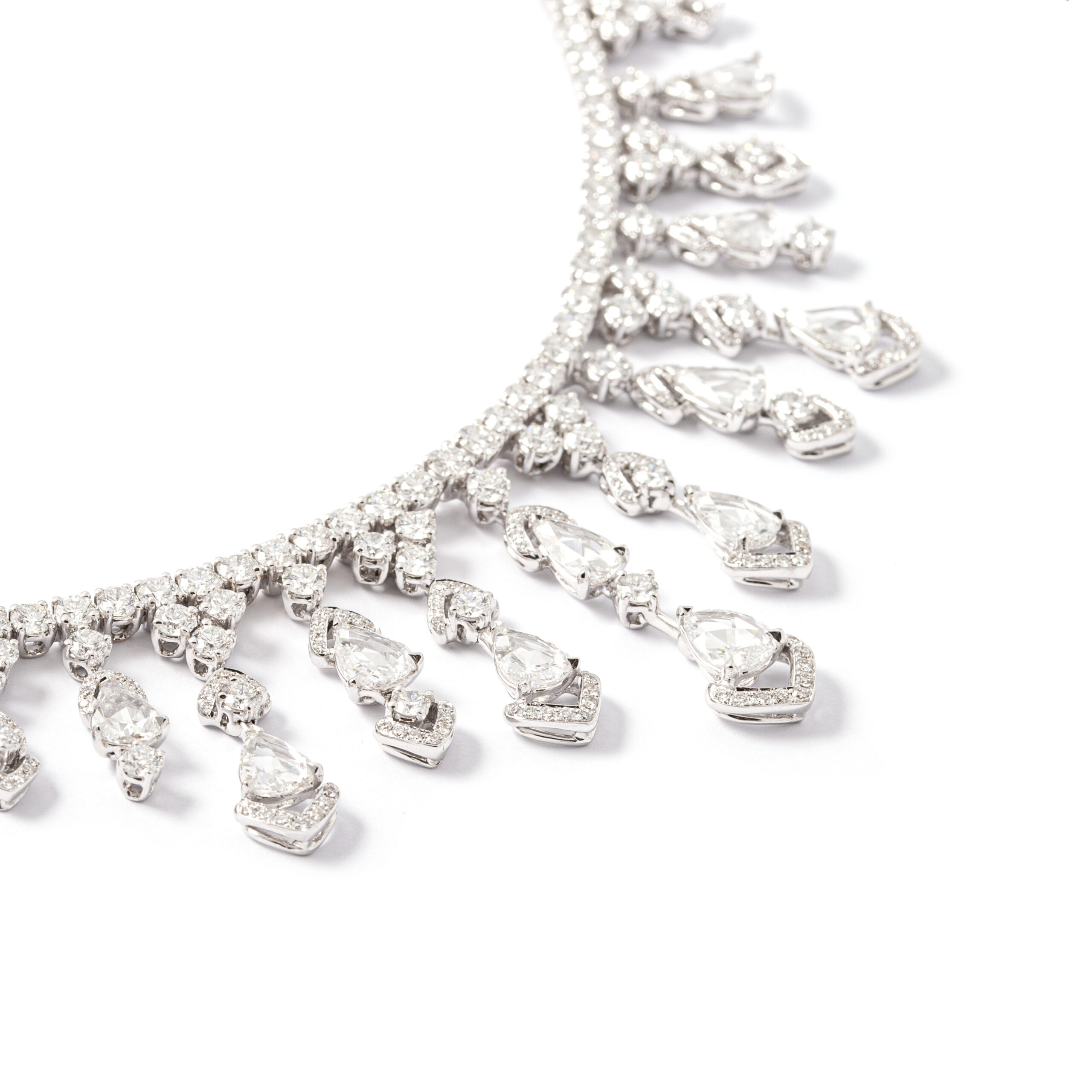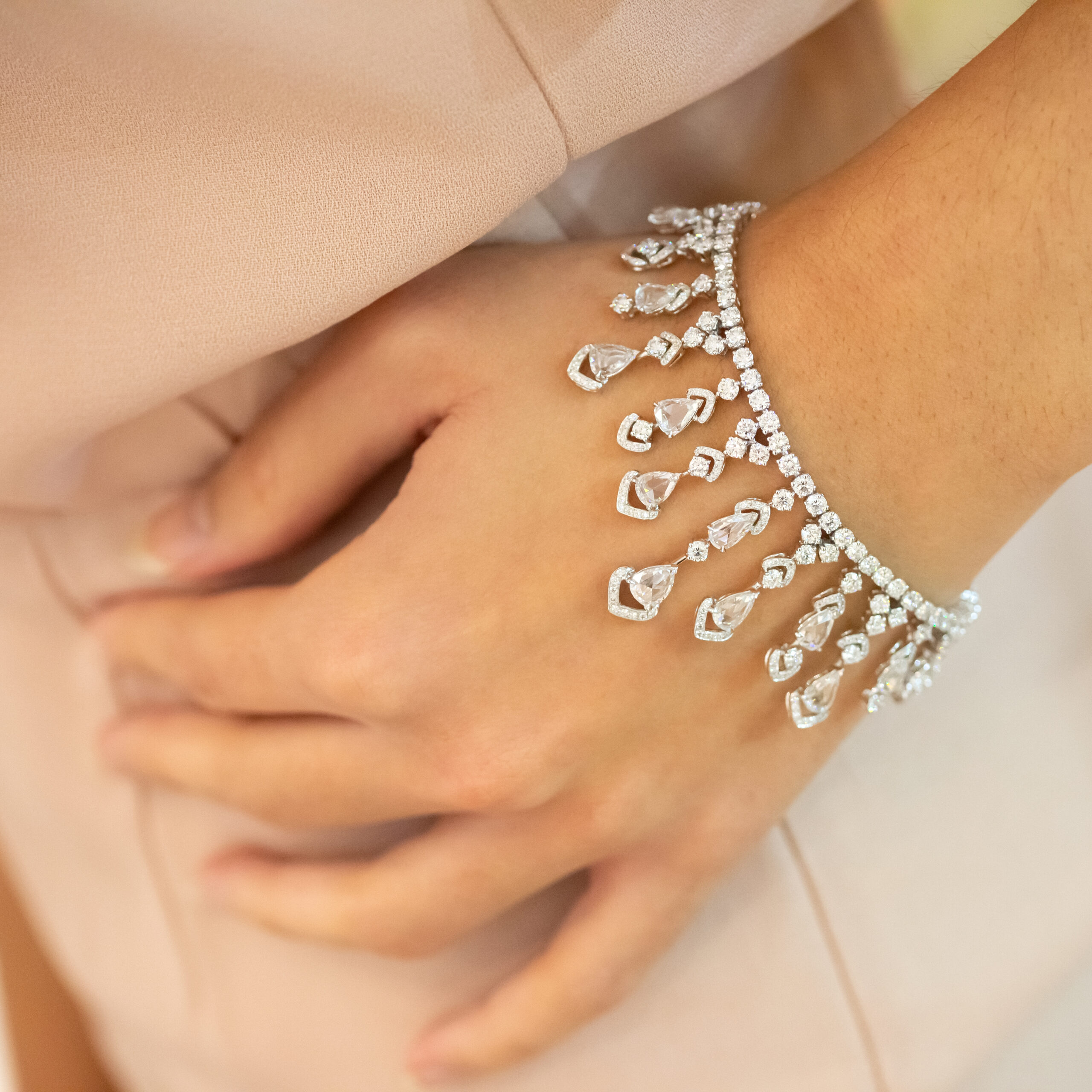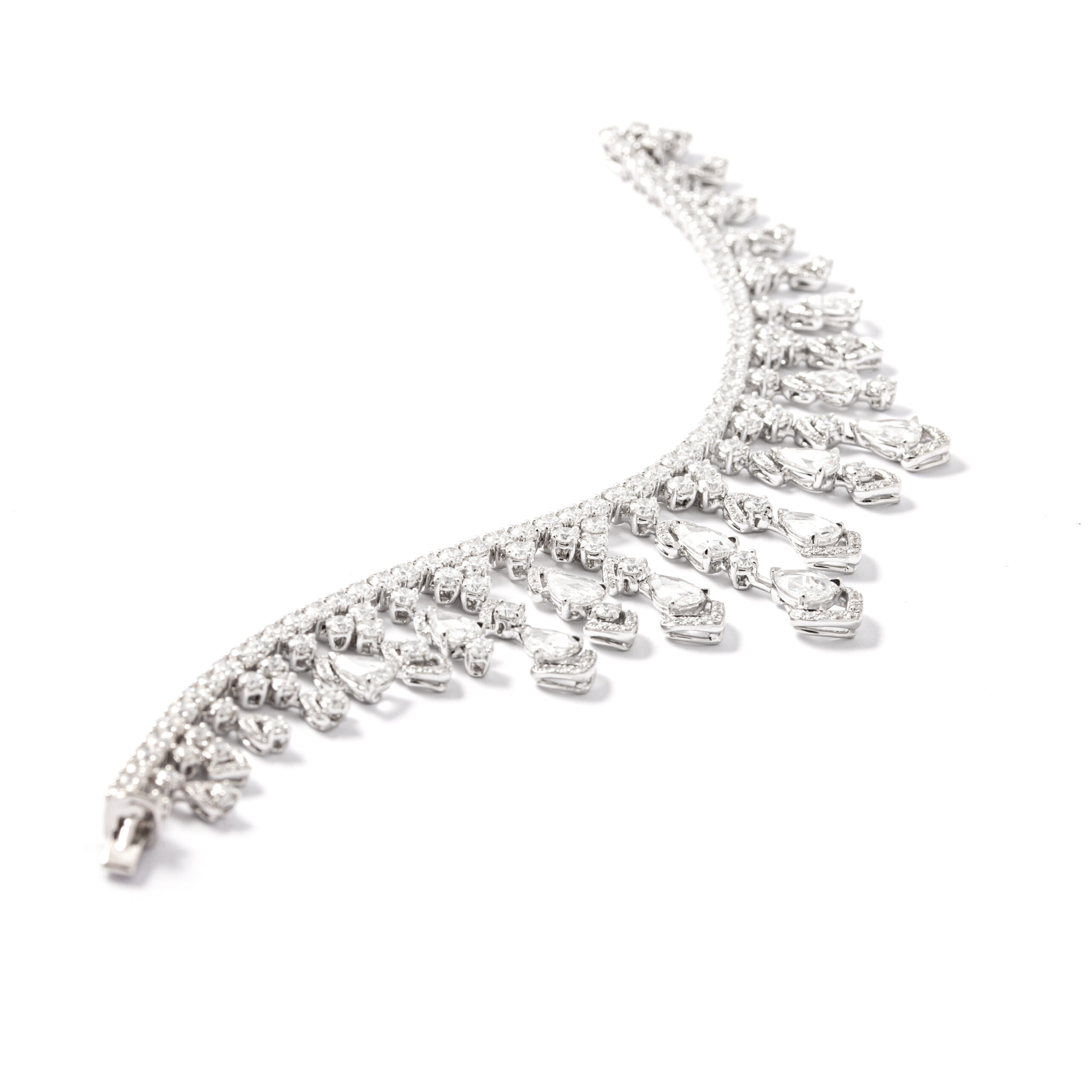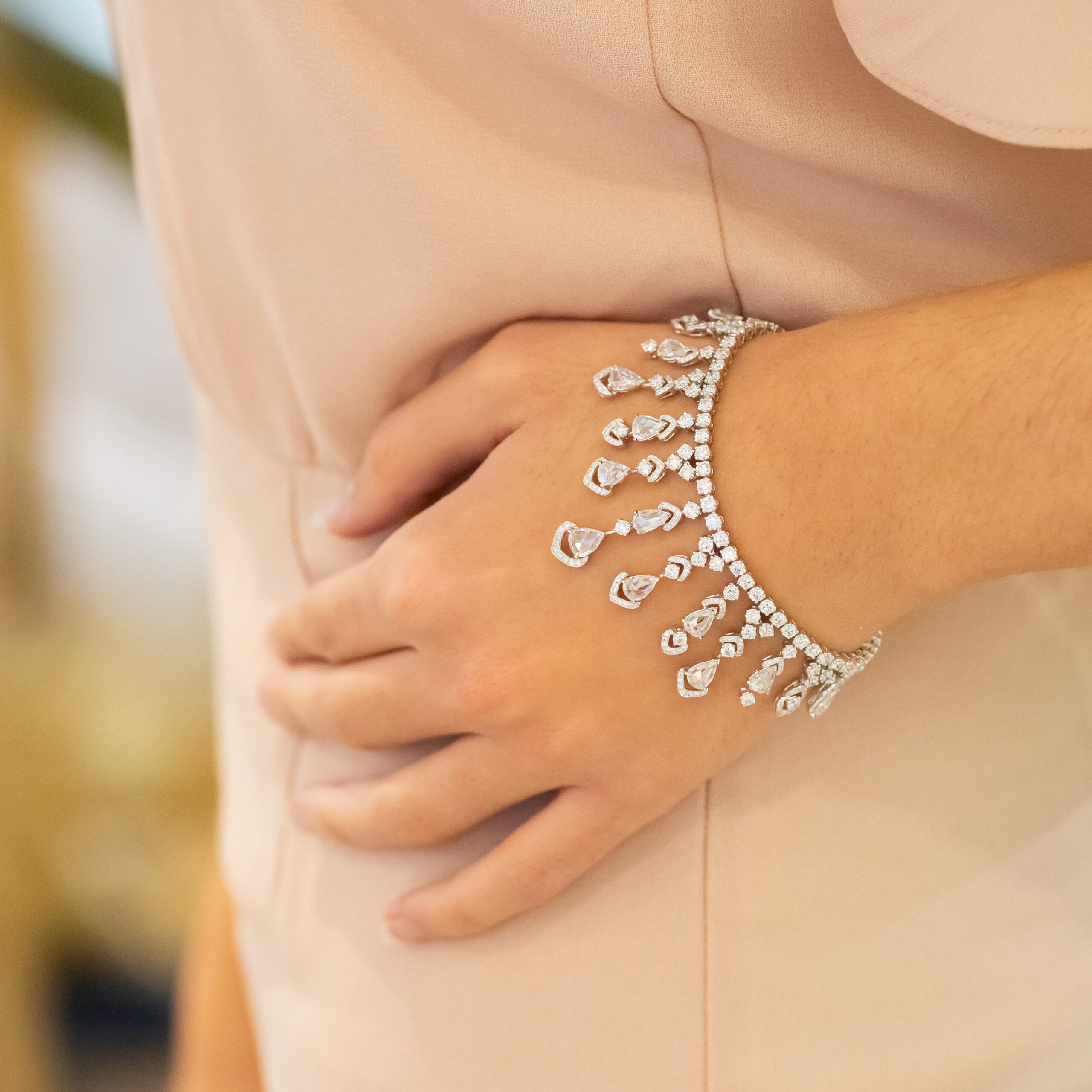 Bracelet in 18kt white gold set with 12 pear-shaped rose cut diamonds 5.12 cts and 341 diamonds 11.25 cts
