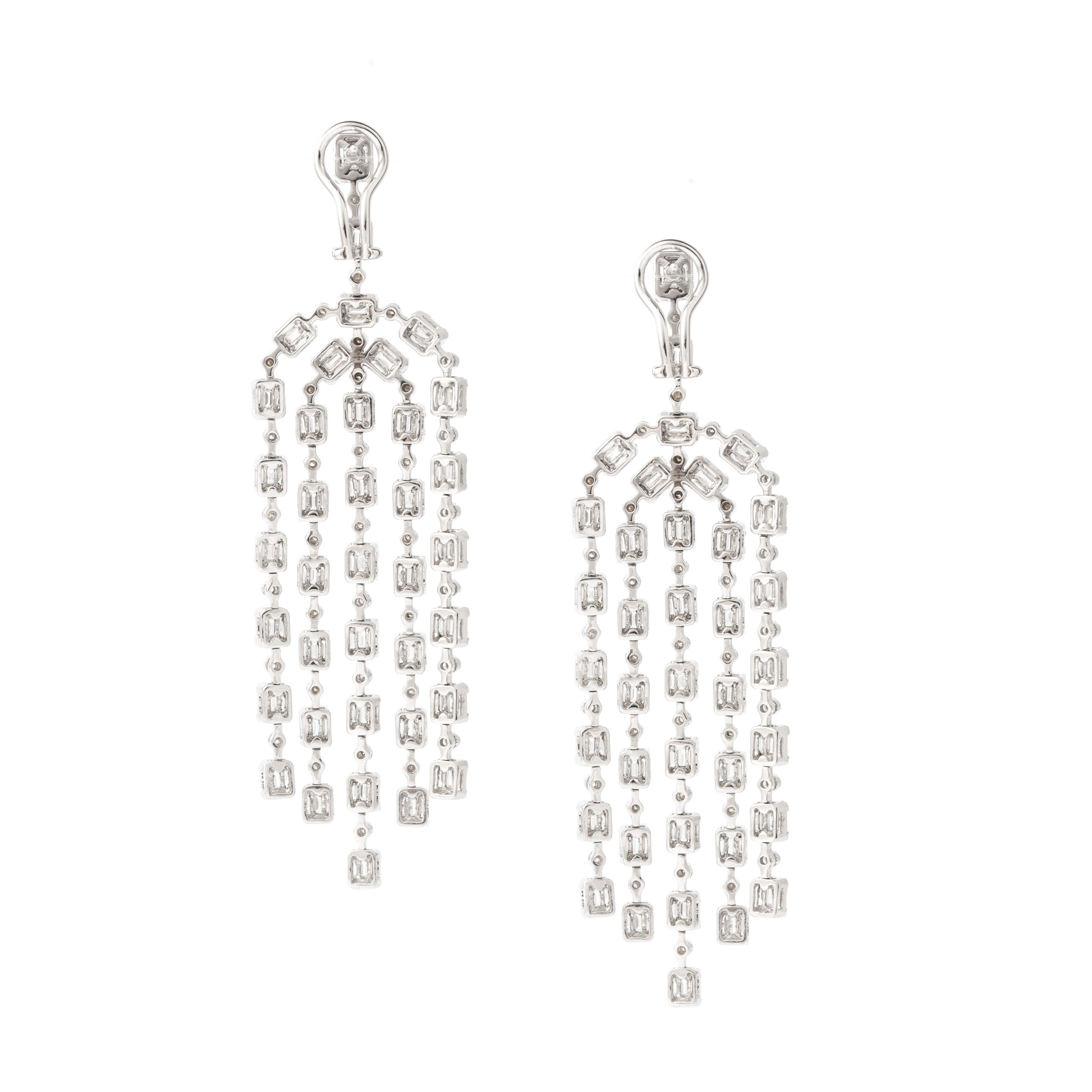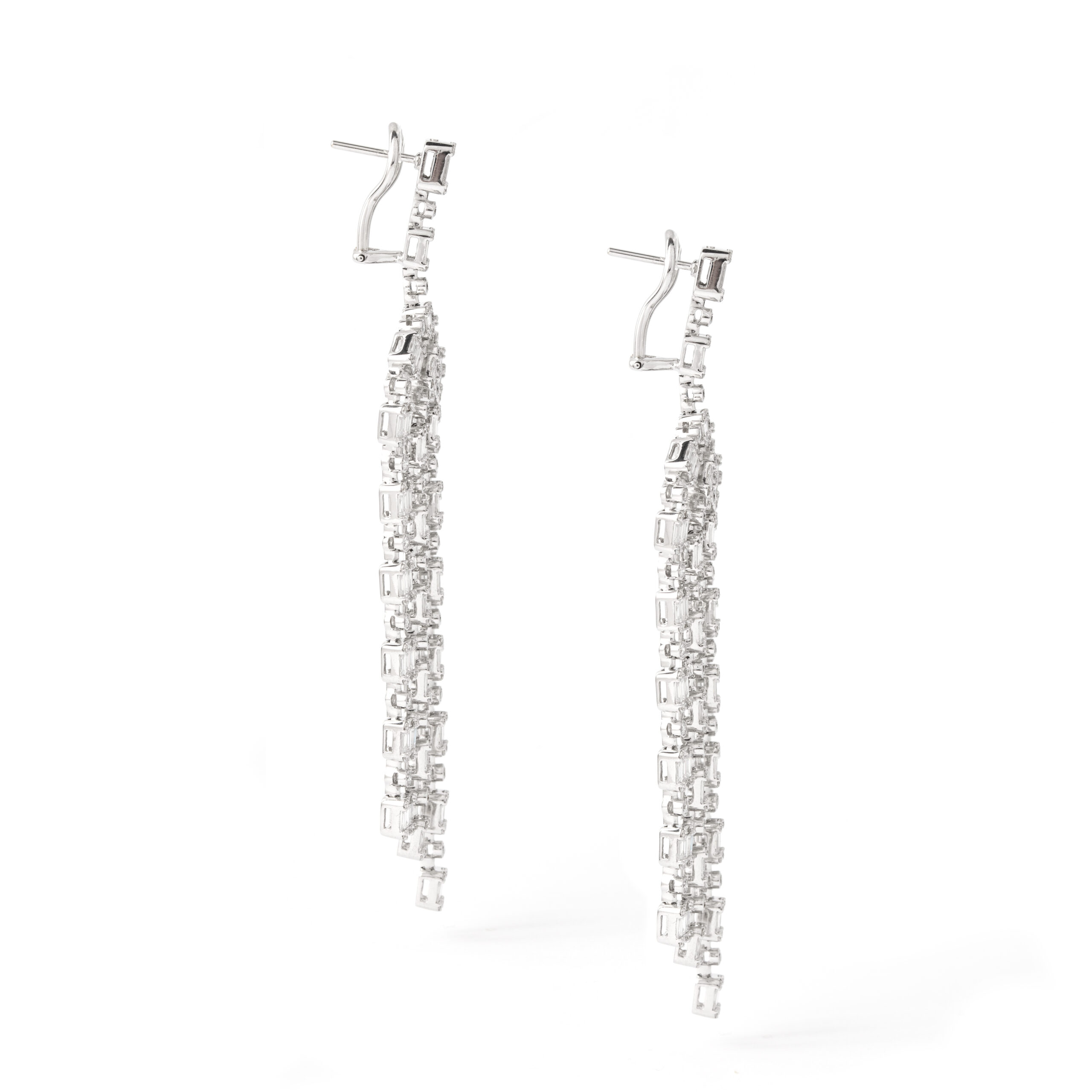 Earrings in 18kt white gold set with 380 baguette cut diamonds 6.85 cts and 376 diamonds 2.34 cts.