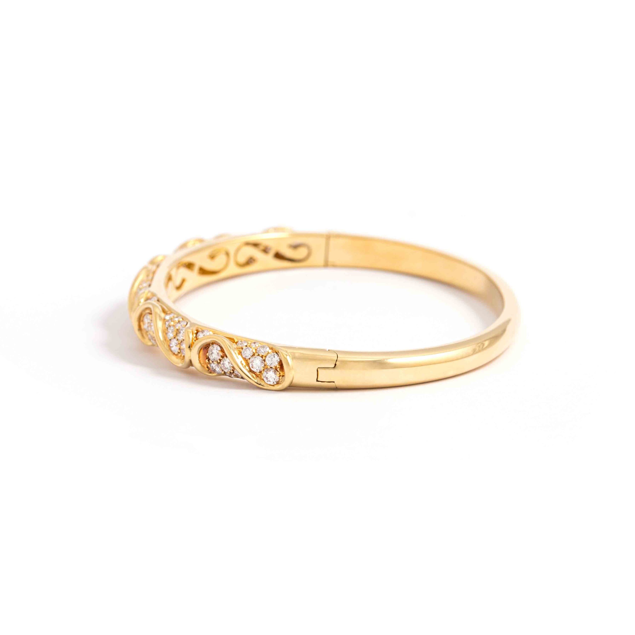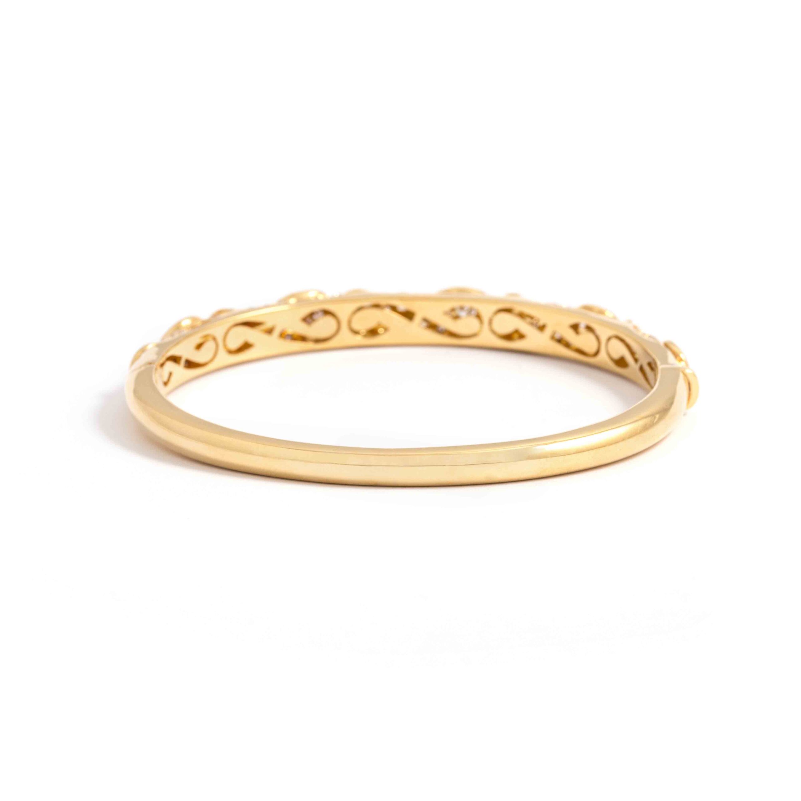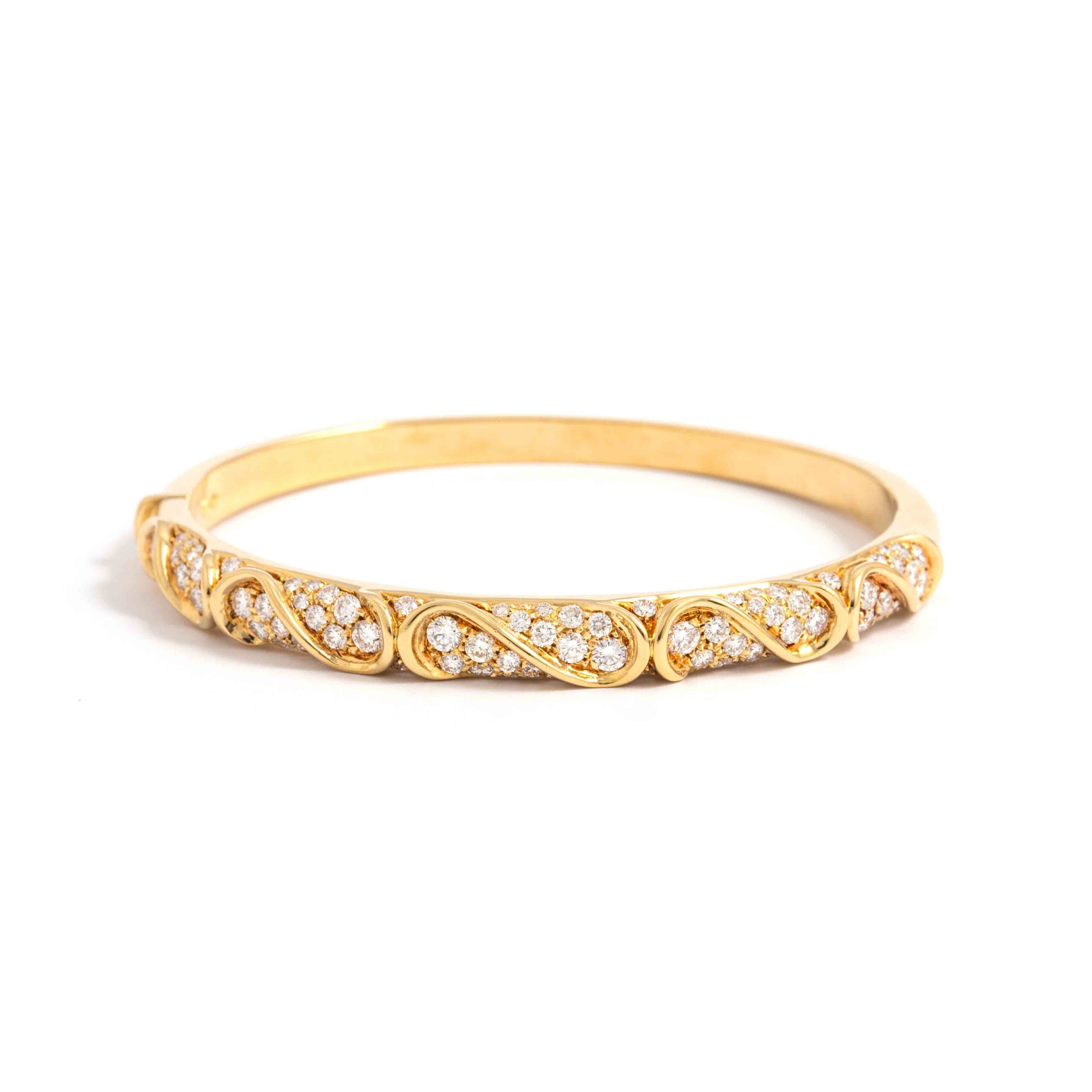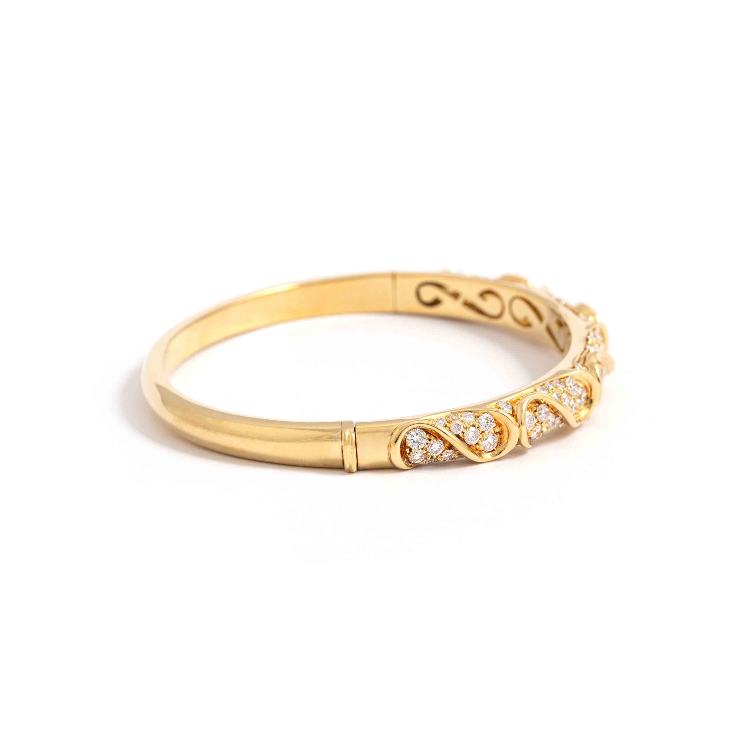 Yellow Gold Bracelet Set with Diamonds. Indulge in timeless elegance with this exquisite yellow gold bracelet adorned with a dazzling array of diamonds, totaling 2.19 carats. Crafted with meticulous attention to detail, the lustrous yellow gold setting provides a radiant backdrop for the brilliance of each diamond.