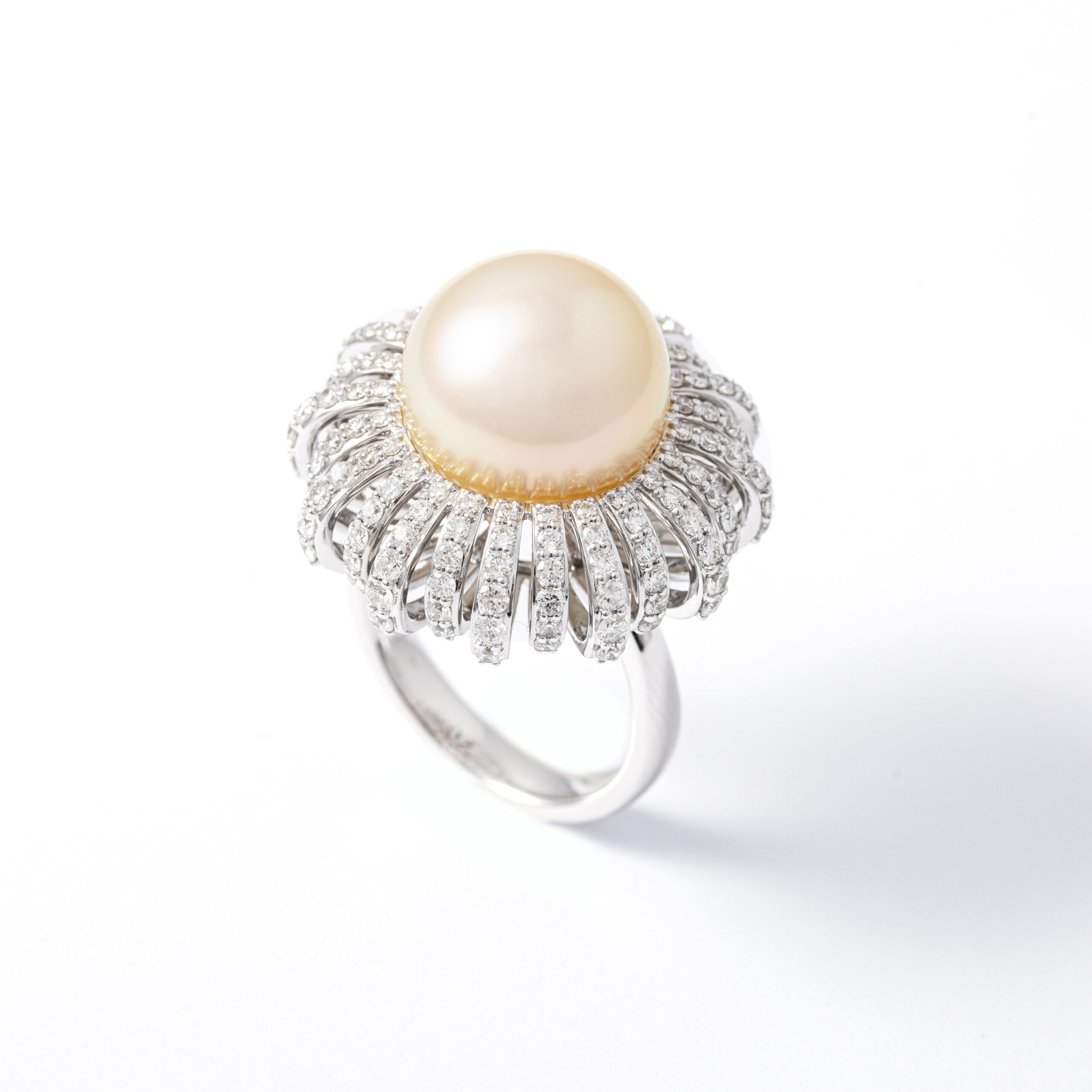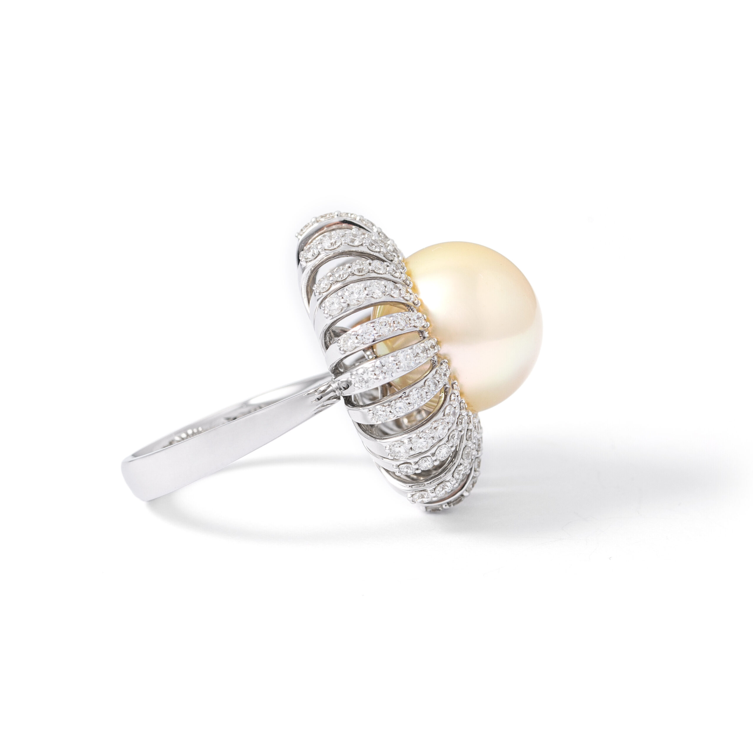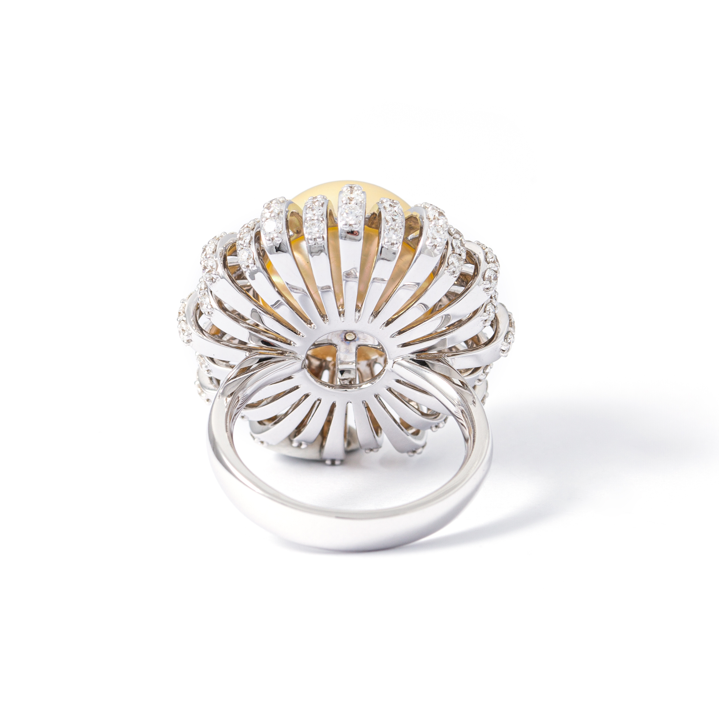 Ring in 18kt white gold set with one yellow with pink and green overtones  18.02 cts and 144 diamonds 1.80 cts Gübelin Certificate