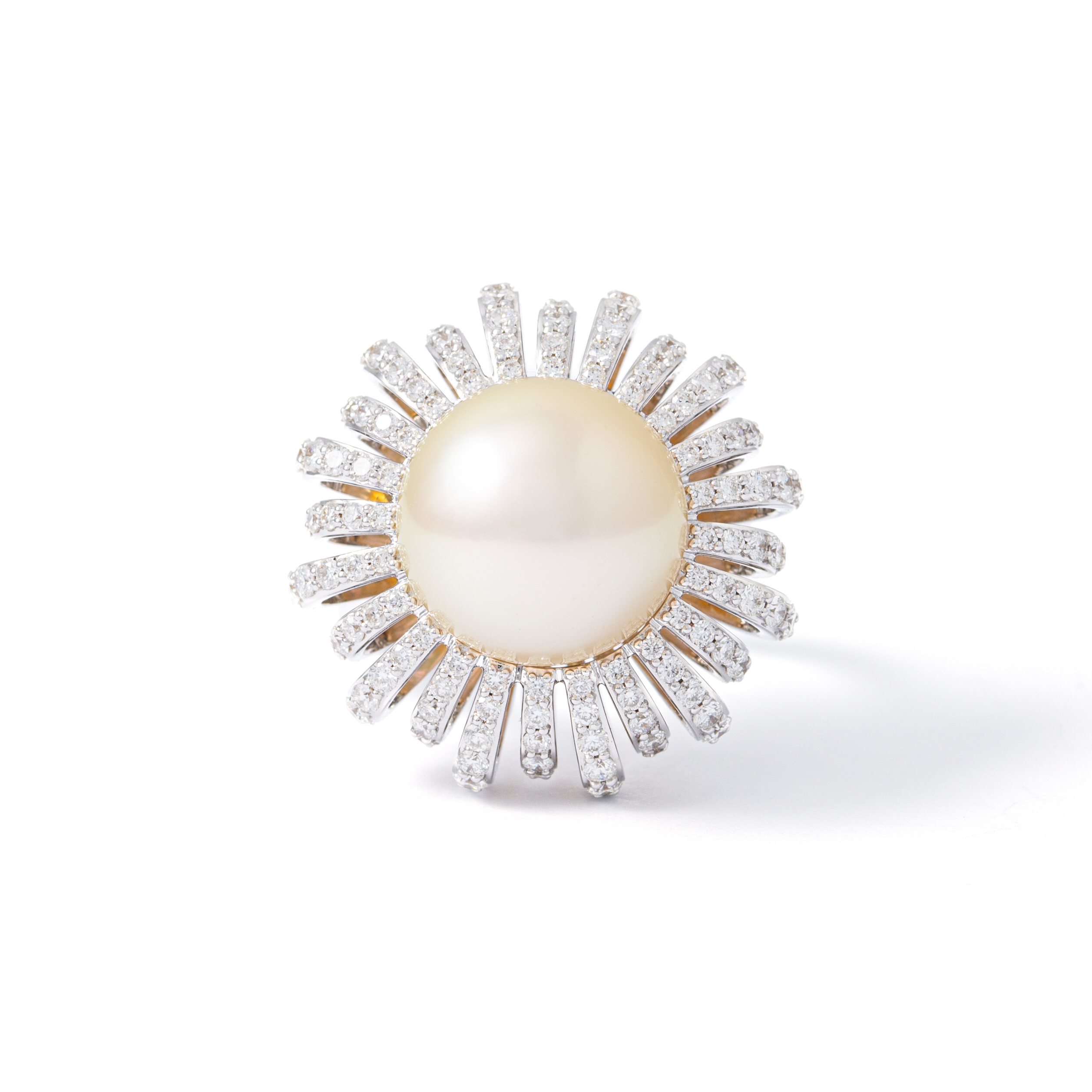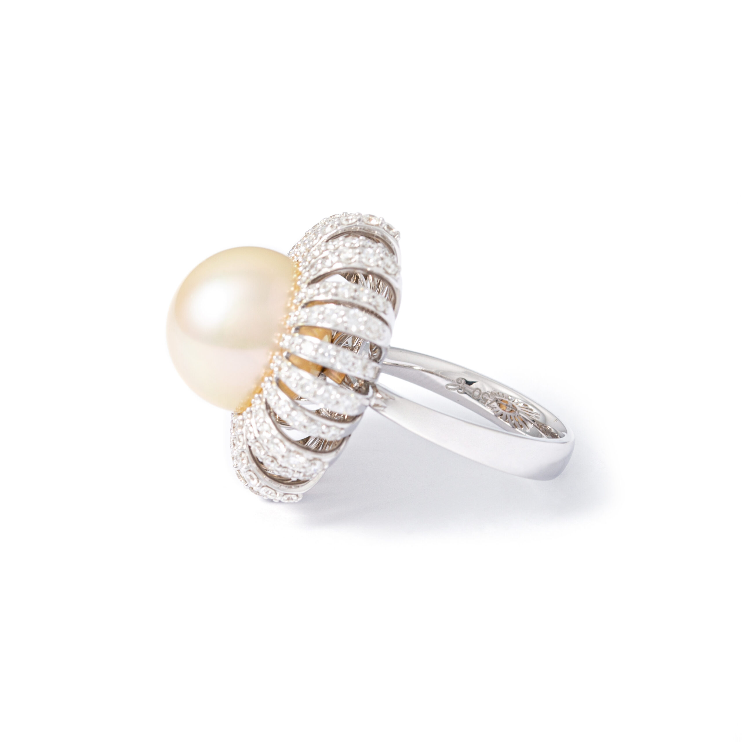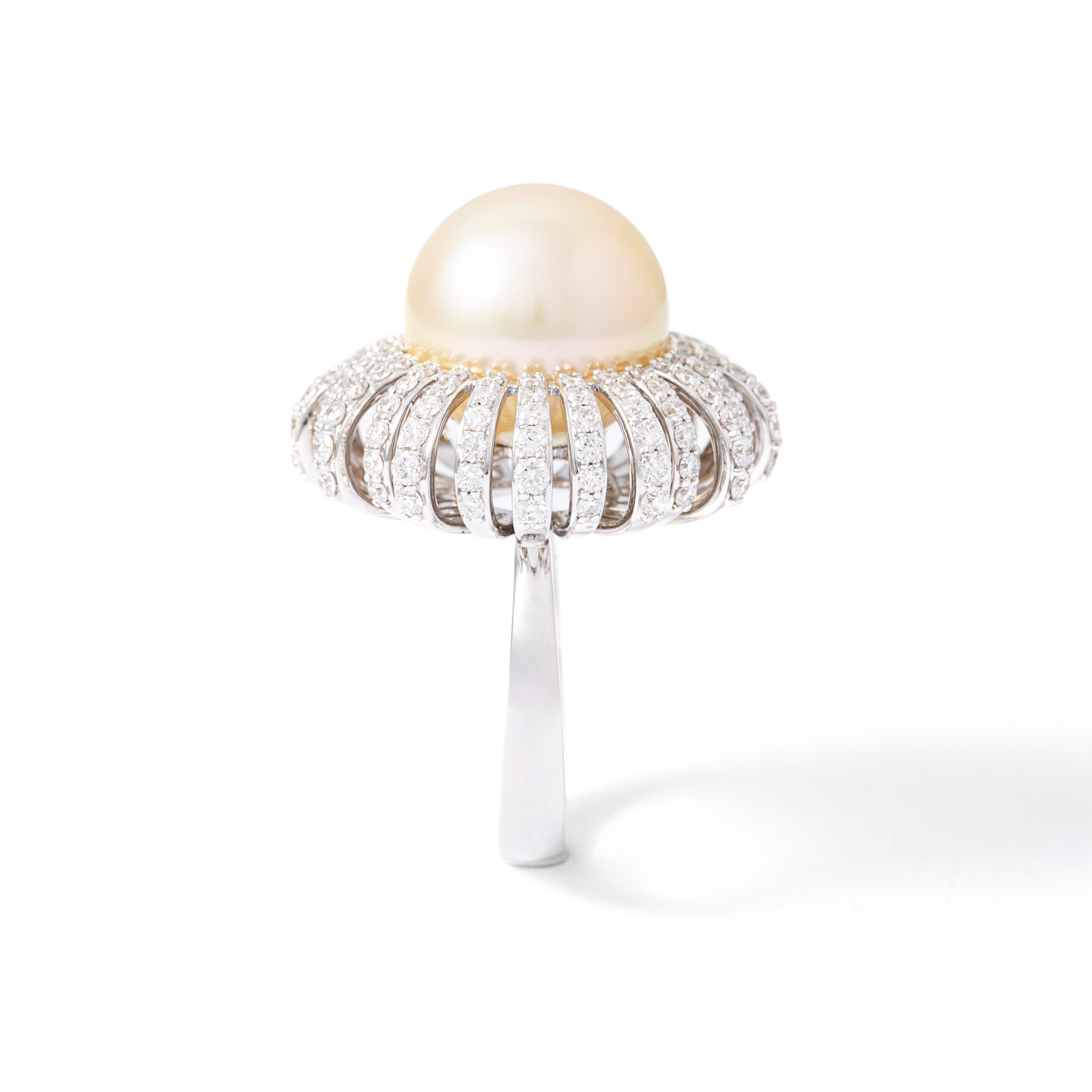 Ring in 18kt white gold set with one yellow with pink and green overtones  18.02 cts and 144 diamonds 1.80 cts Gübelin Certificate